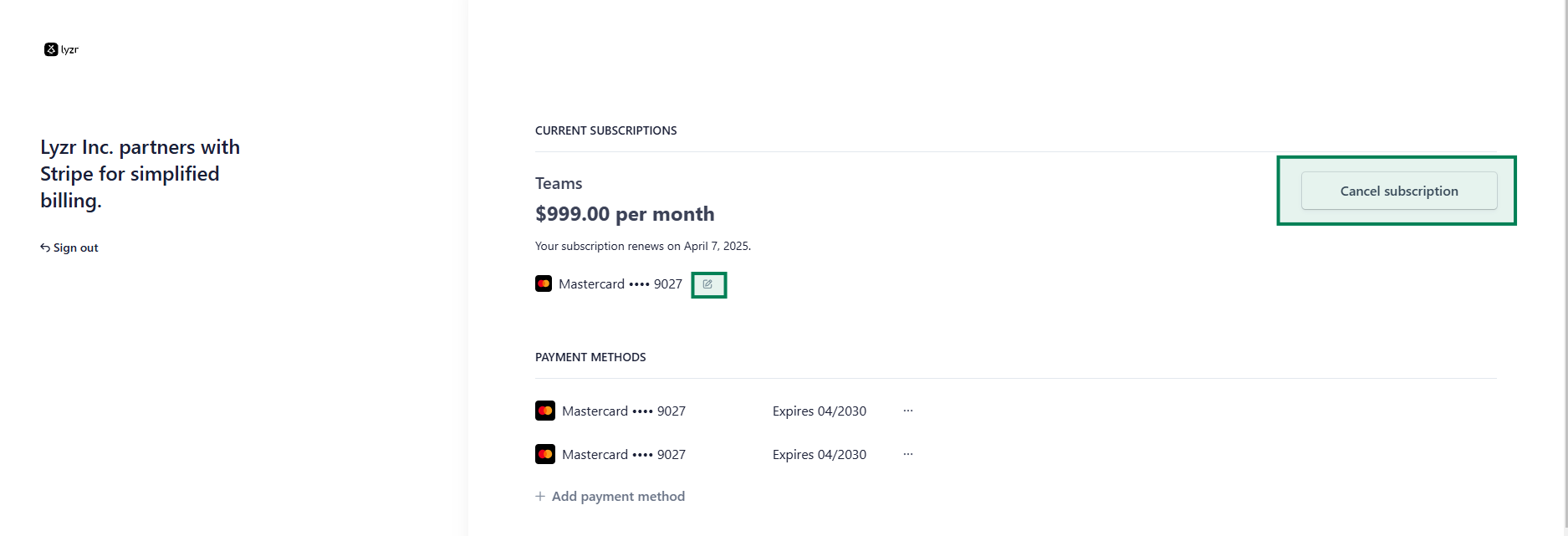 A stripe portal gets opened. For the 1st time, it will ask you for your email, where they will provide a link. Once you get into the portal, you get to see the following items as shown in the image below: